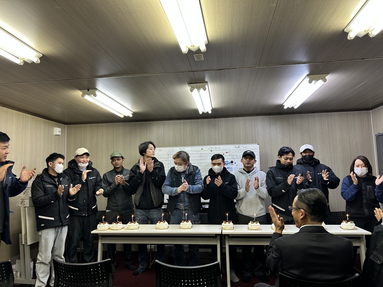 この日は会長のお誕生日ということもあり渡大組の渡辺社長からお花のサプライズプレゼントがありました。